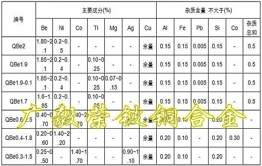 加工鈹青銅含鈹量控制在2%以下,國(guó)產(chǎn)鈹銅加入0.3%的鎳,或加0.3%的鈷。